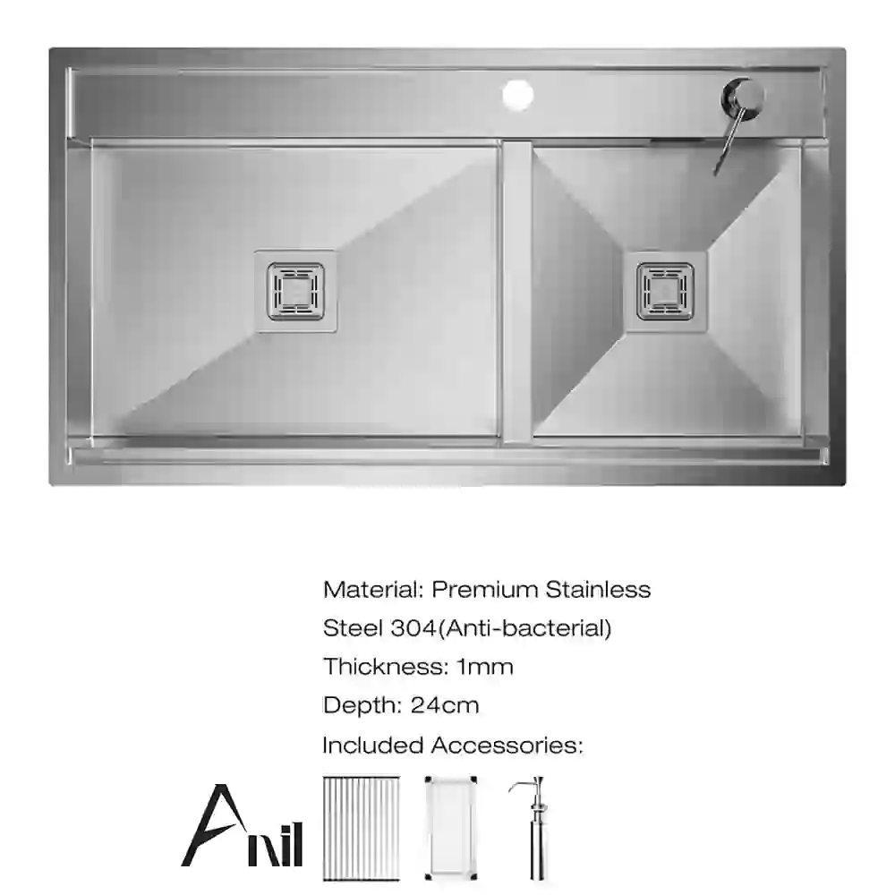 سینک مدل B90S توکار این محصول وارداتی از کشور ترکیه به صورت دولگن با یکی بزرگ و دیگری کوچکتر با ابعاد 90 * 50 سانتی متر و کیفیت فوق العاده بالا میباشد. از ویژگی های بارز این محصول میتوان به عمق لگن فوق العاده 24 سانتی متری و پله مجزا برای محل نصب شیر برای جلوگیری از پاشیدن آب روی صفحه کابینت اشاره نمود. ضخامت ورق یک میلیمتر این محصول از ویژگی های قابل توجه این محصول میباشد.